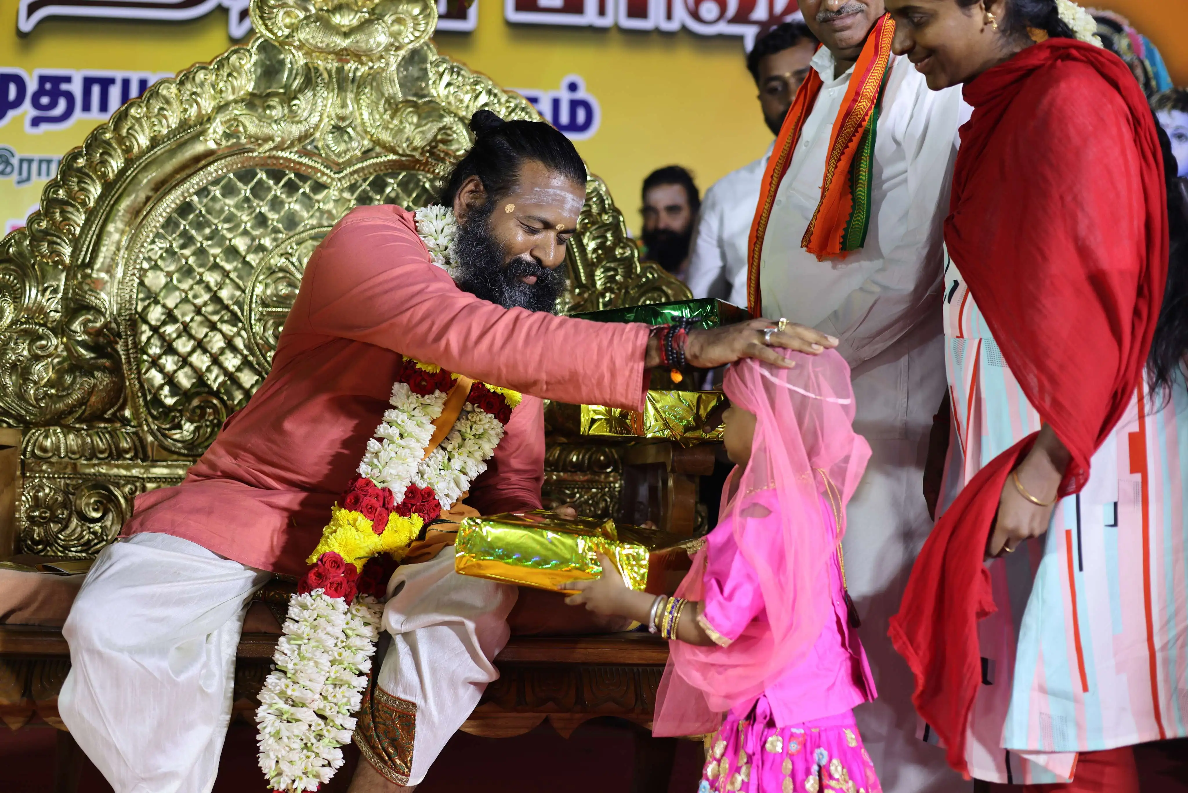 Sri Anamaliar Easwaran was born to Srinivasa Acharya C.M and Santa Lakshmi in a Traditional Indian Old Vishwakarma Acharya Family in Coimbatore, Tamil Nadu, India. He faced many potentially life-ruining obstacles and struggles in his early years, including losing both parents. This caused him to face homelessness at the age of 18. For three years, he lived a Sanyasi lifestyle traveling alone throughout India. During this time, he sought knowledge from many monks and gurus, learned spiritual practices and yogic sciences, and visited many temples, gaining understanding of the science behind them. When he returned to Coimbatore in 1997, he set his life path on dedicating himself to humanitarianism, with a mission to bring love, peace and compassion to the people of India and the entire world. It was at this time that he envisioned Vedashram and started to work tirelessly to make it a reality.